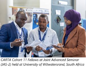 The Joint Advanced Seminars (JASes), CARTA’s signature four-phased training model, are guiding this journey. The JAS series is offered sequentially to each CARTA cohort; two in the first year, one in the third year, and one at the beginning of the fourth year of fellowship, designed to build skills and conceptual depth throughout the program. Each phase brings them closer to designing and conducting rigorous studies that address pressing public and population health challenges across Africa.